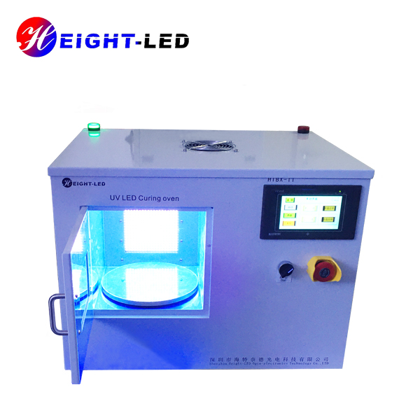 一款針對UV膠粘劑固化設(shè)計(jì)的高性能UVLED光固化系統(tǒng),該系統(tǒng)采用箱式結(jié)構(gòu)內(nèi)部放置UVLED照射頭及控制板,外加可透視窗口。共有兩個(gè)出光面,頂部出光面積200X200mm,側(cè)面出光面積為150X120mm,UV光譜波長為365nm,采用強(qiáng)制水冷散熱,支持外部信號輸入及觸發(fā),箱門處裝有傳感器,關(guān)門燈亮關(guān)門即滅,底部裝有轉(zhuǎn)盤,可根據(jù)需要調(diào)整轉(zhuǎn)速,保證受光均勻度及異型件側(cè)面點(diǎn)膠位置的UV固化能夠充分進(jìn)行。
